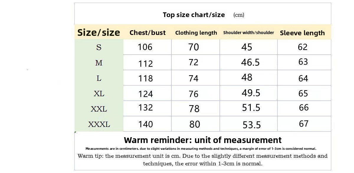 Sizes: S, M, L, XL, XXL, XXXL