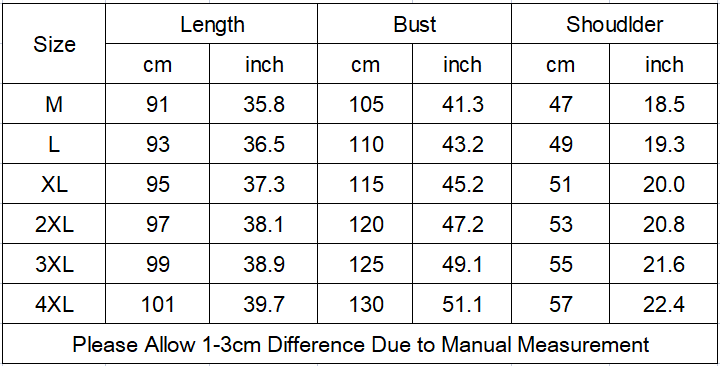 Available in a range of sizes from M to 4XL, ensuring a perfect fit for every body type. Check out the size chart to find your ideal match!